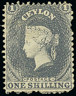 — perf 13 1/- slate-purple, fine unused without gum. Rare. S.G. 43, £1800. Photo