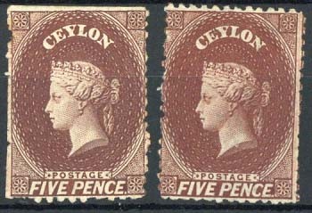 5d. red-brown, two unused shades, one with small part original gum (some minor perf imperfections), good to fine. S.G. 53, £600