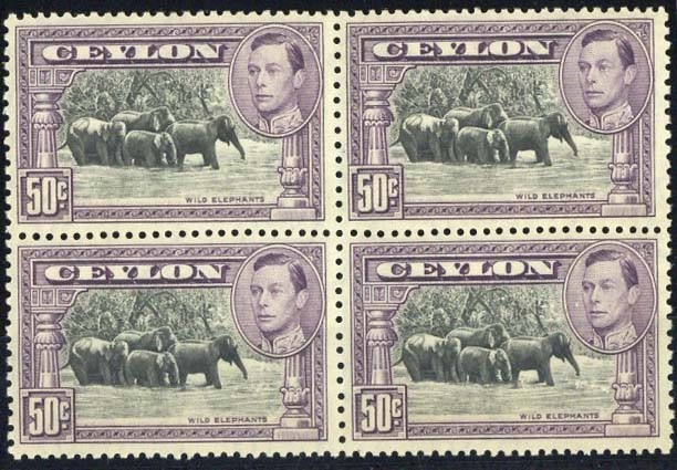 — 50c. black and mauve (perf 13x11½) block of four, fine mint. S.G. 394, £640