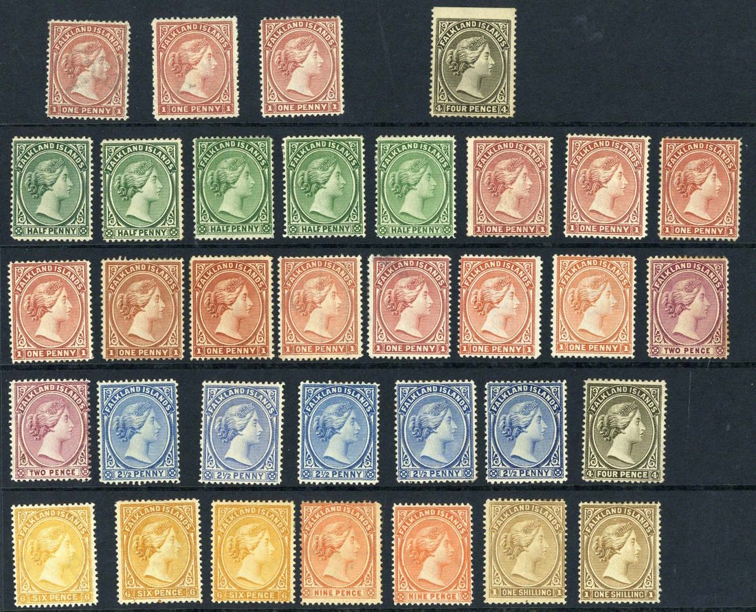 1885-91 CA sideways 1d. (3), 1889 CA upright 4d. with imperforate top margin and 1891-1902 ½d. (5), 1d. (10), 2d. (2), 2½d. (5), 4d., 6d. (3), 9d. (2) and 1/-, various shades, unused or with part original gum, generally good to fine