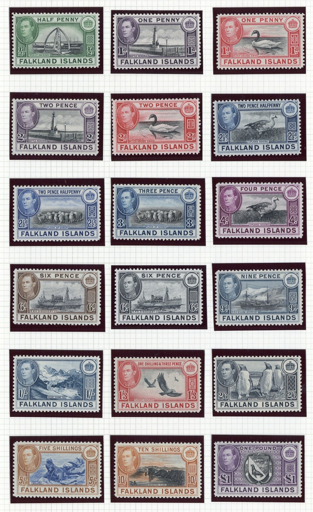 ½d. to £1 set of eighteen, good to fine mint, and 1946 Victory 3d. lower right corner plate block of six (unmounted), the upper left stamp showing Crown flaw and re-entry, good to fine mint. Cat. £540+