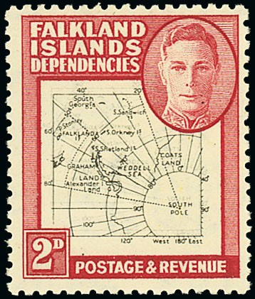 1948 thin map, 2d. black and carmine showing (blanket offset) variety map double, fine mint. Murray Payne Certificate (2014). CW 43a. Photo