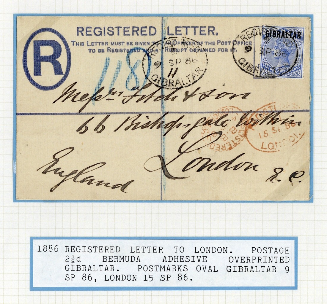 1886 (9 Sept.) 2d. F size envelope, uprated with 2½d., to London, neatly cancelled by oval Registered datestamp and with two London registered oval datestamps (14.9, 15.9) below; clean and attractive