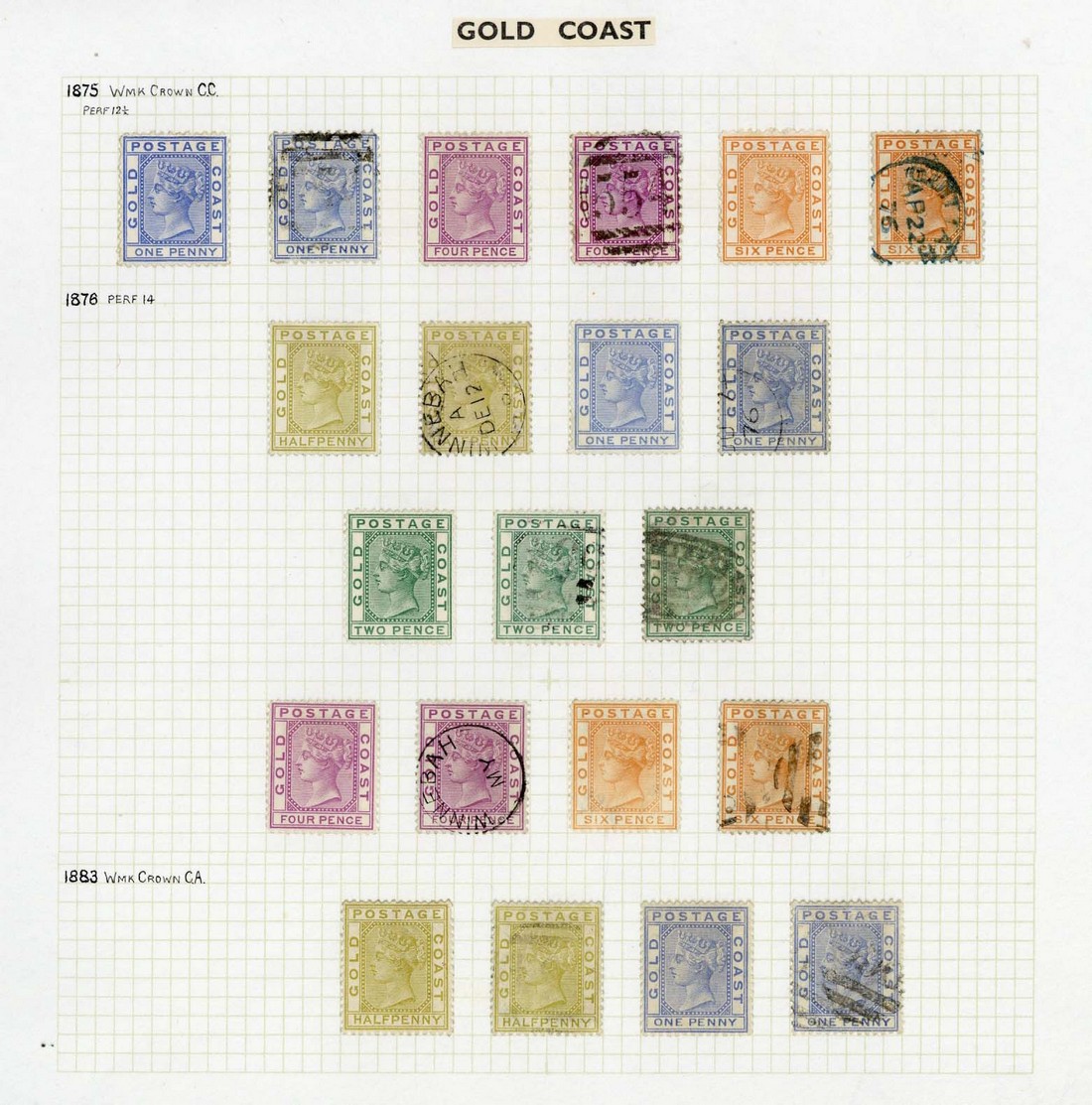 1875-1935 mint and used collection on leaves, including 1875 perf 12½ 1d., 4d. and 6d. with part gum and the same values used, 1876-84 perf 14 ½d. to 6d., 1883 CA ½d. olive-yellow and 1d. blue with part gum and used, 1884-91 with values to 2/- and including better cancellations, 2½d., 3d., 1/- and 2/- overprinted "specimen", 1889 1d. on 6d. mint and used, 1889-94 set overprinted "specimen", 20s. dull mauve and black on red mint and used, 1898-1902 set overprinted "specimen" and sets mint and used, 1902 set overprinted "specimen", ½d. to 20s. mint, 1907-13 set overprinted "specimen" and a further set mint, 1913-21 with values to 5/- (6), 10/- (3) and 20s., 1921-24 15/- Dies I and II, £2; generally good to very fine