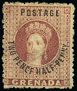 1881 (Apr.) wmk Large Star, 2½d. rose-lake showing variety "pencf", centred to left, fine unused without gum. S.G. 22d, £475. Photo