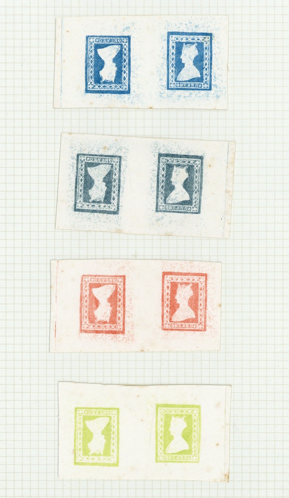 1922 1a. Queen and Gothic Crown reprints on card, four different colours in tête-bêche pairs; light traces of foxing in placesR