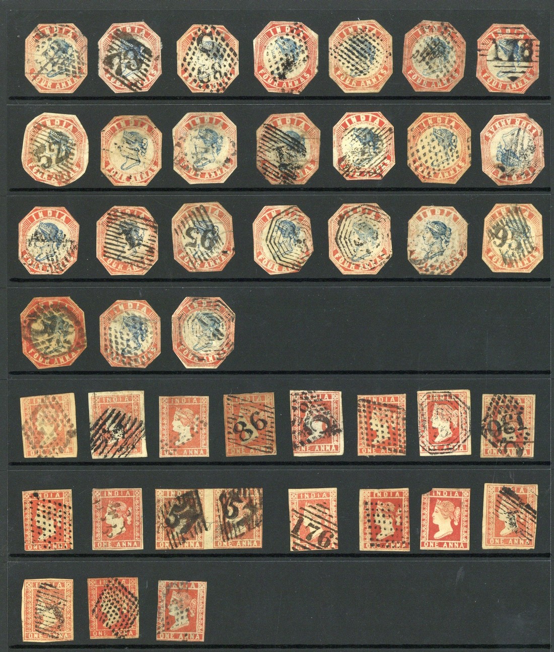A used selection comprising ½a. (180), 1a. (19 with a pair) and 4a. (24, all cut-to-shape), margins in places. Condition very mixed