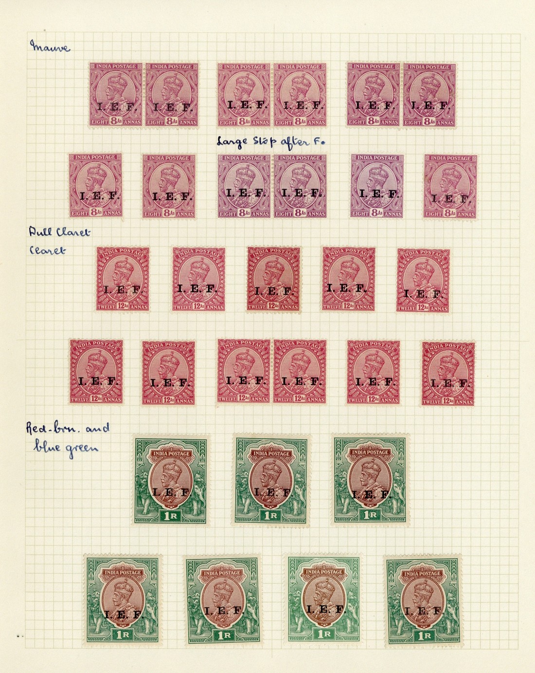 A mint collection with a range of all values in blocks of four or larger, 3p. complete sheet of 240, a selection of type varieties and 12a. with overprint on face and reverse, (2, one partially affixed on ½a. stationery envelope to Basra); condition variable with the majority showing toning in varying degrees though an interesting lot