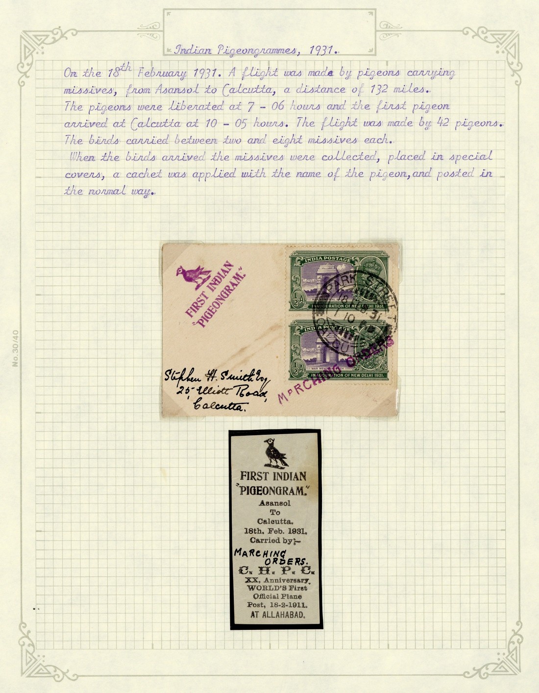 1931 (18 Feb.) Asanol to Calcutta envelope bearing ½a. pair and carried by "Marching Orders", and 1931 (31 Dec.) Hazaribagh to Calcutta envelope bearing ½a. and carried by "Gurum Cha", both with missives
