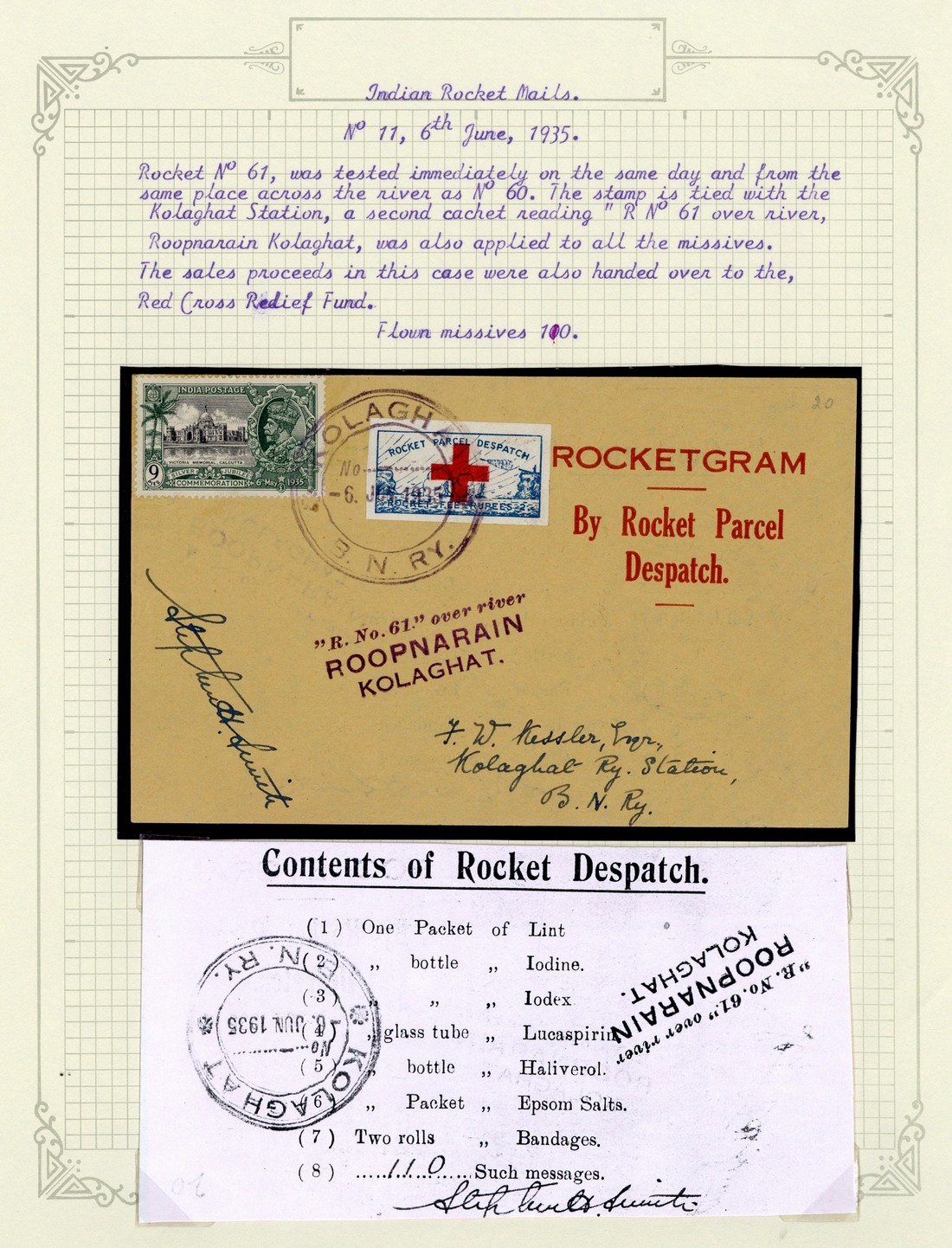 1935 (June) missives (4), comprising (6th. June) Quetta Earthquake and Kholagat, Roopnarain River, and (29 June) Damoodar River "Livestock" and "Parcel" flights. Cooper 10-13