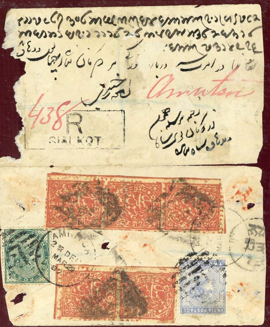 1878-94 issues for Jammu and Kashmir collection on two volumes, including a range of unused with some complete sheets, used and usage on covers/cards, Official Stamps and a few stationery cards; also a stockbook with a selection of various States and others including Sirmoor with 1895-99 6p. Elephant printer's sample sheet of nine in violet
