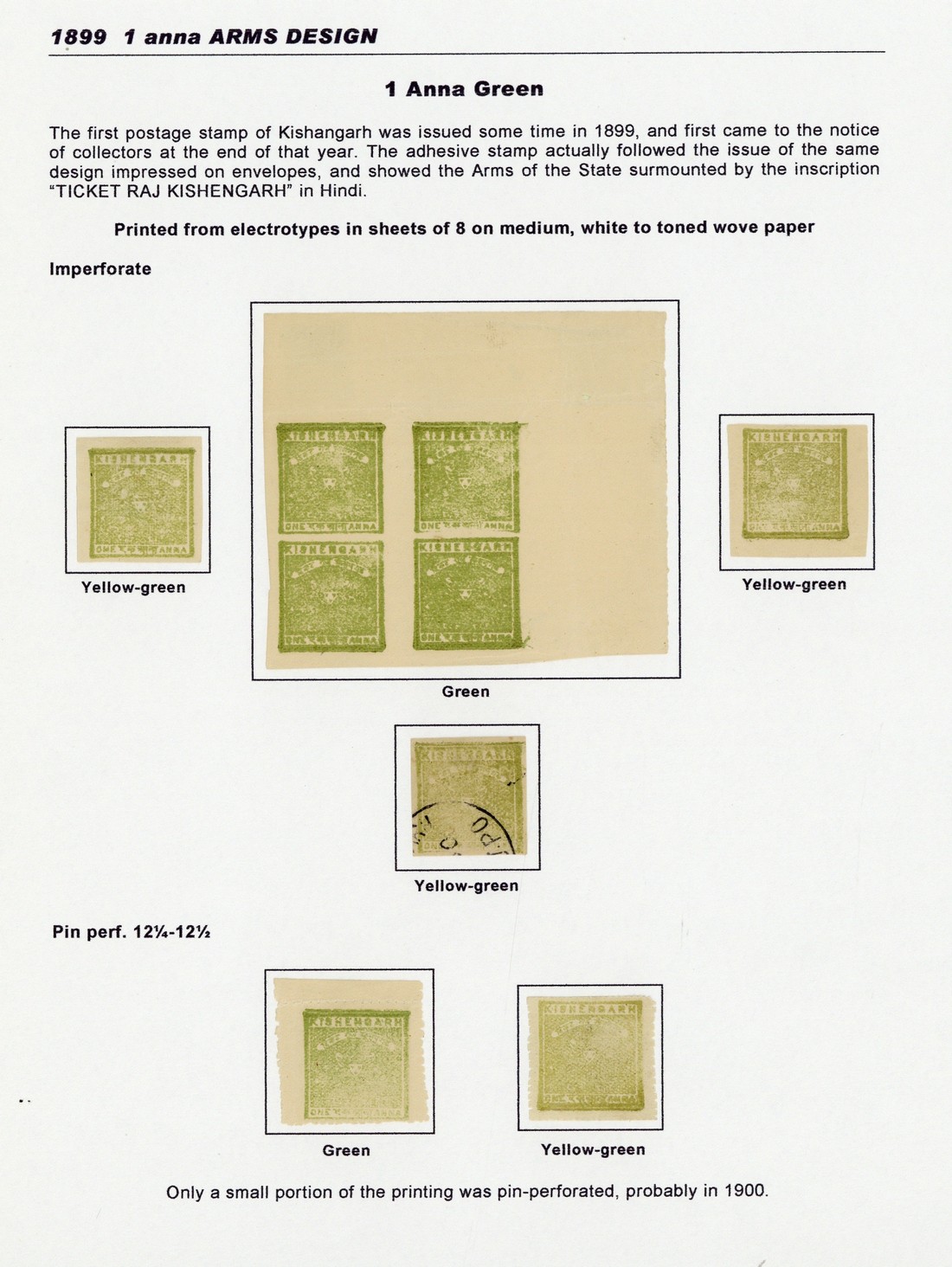 1a. green, imperforate upper right corner block of four and two singles, unused, a used single, and pin-perforated unused singles (2). S.G. 1, 2, £387