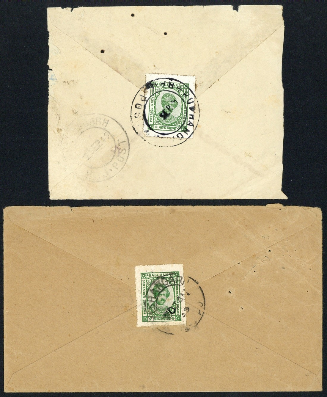 Collection neatly arranged in two stockbooks, one with a largely unused range of the stamps including 1899-1901 values to 5r. imperforate and rouletted (5) and with a few tête-bêche pairs, 1904-10 unused to 5r. with some low value blocks, 1a. (5) and 2a. (5) perforated colour trials, 1913-16 set to 5r. and ¼a. sheets (2), some 1928-47 issues and Official stamps; the second stockbook with 1860's small native envelope bearing ½a. with United Provinces duplex, a few unstamped documents and postal slips, 1928-47 usages on document or covers and Indian post office cards (2, one outgoing and one incoming)