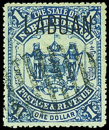 1904-05 $1 blue cancelled to order; a few shortish perfs., otherwise fine. Rare. S.G. 139, £1,000. Photo