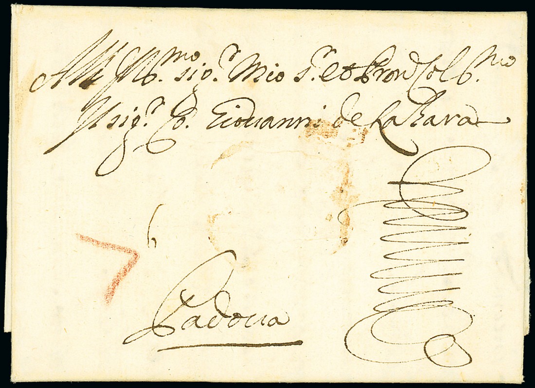 1664 (18 Aug.) Knights of St. John entire letter from Gio Battista Psecatori to Count Giovanni Lazara at Padua, manuscript "6" and "7" rate marks of Padua and Venice. Photo