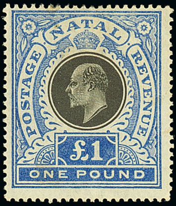 1902 CC £1 black and bright blue, centred to top, fresh and fine mint. S.G. 142, £325. Photo