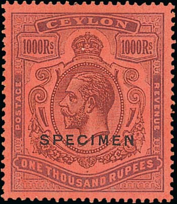 1000r. purple on red overprinted "specimen" (D16), fresh and fine mint. S.G. 323s, £1,300. Photo