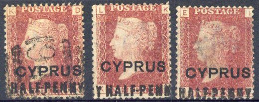 1881 (Feb.-June) "half-penny" (18mm.) on 1d. red, Plates 217 and 218 unused without gum, and Plate 205 used, good appearance. S.G. 7, £235