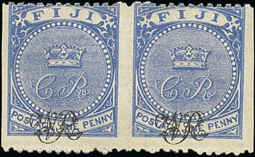 1876-77 laid paper, 1d. blue horizontal pair, variety imperforate vertically, fresh and fine mint. S.G. 31c, £700. Photo