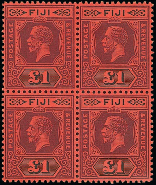 — £1 purple and black on red Die II block of four, fresh and fine unmounted mint. A scarce block. S.G. 137a, £1,000+. Photo