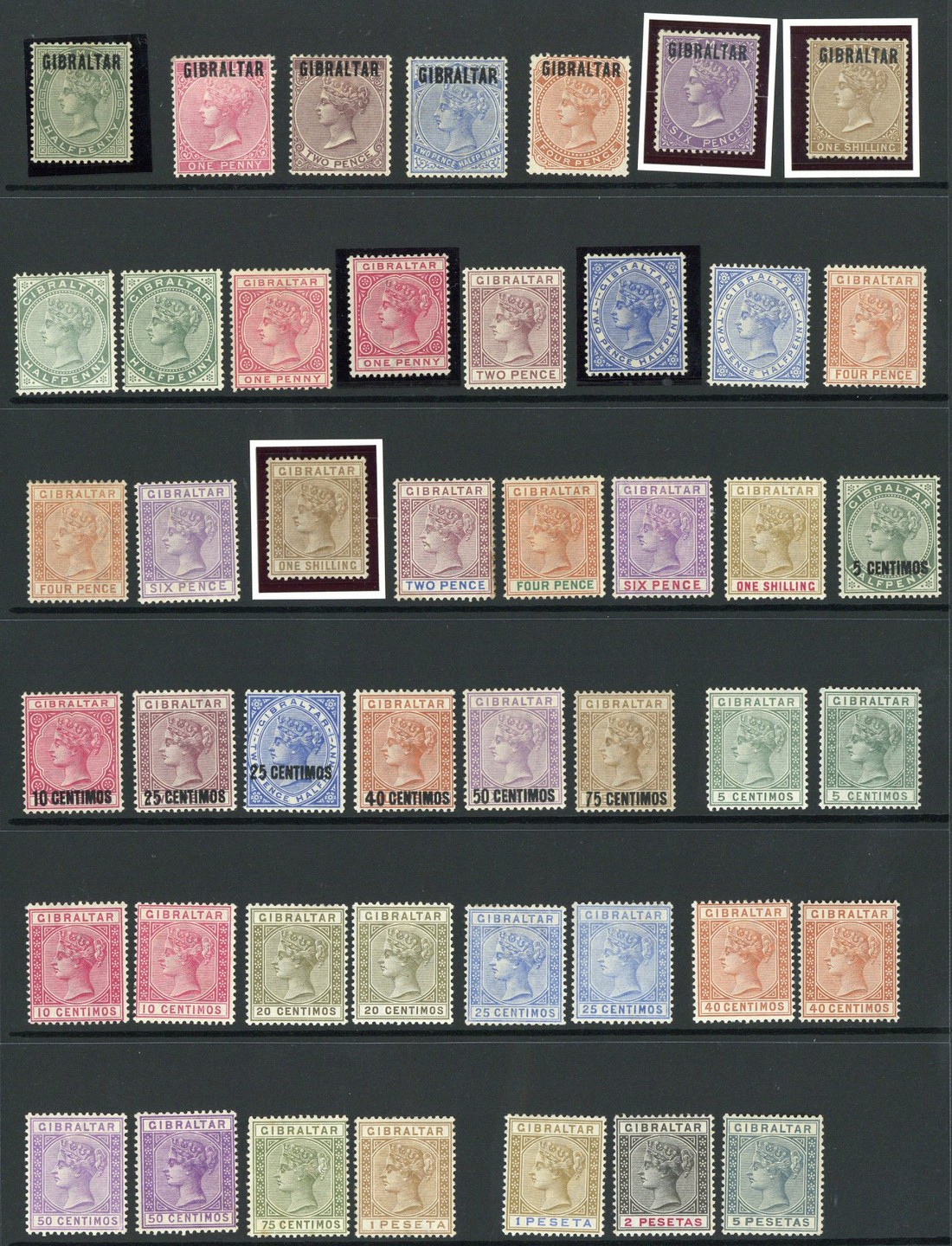 1886 (1 Jan.) ½d. to 1/-, 1886-87 ½d. to 1/- (four additional values), 1889 5c. on ½d. to 75c. on 1/- and 1889-96 5c. to 5p. (five additional values), part to large part original gum, a few minor imperfections, otherwise fresh and fine. S.G. 1-33, £2,400+