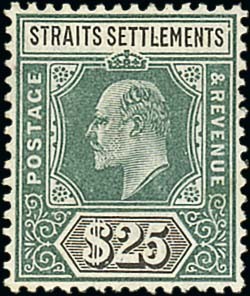 1906 MCA $25 grey-green and black on chalk-surfaced paper, fresh and fine mint. Scarce. Diena Certificate (1973), S.G. 139, £3,000. Photo