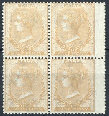 — ½d. pale buff block of four, the upper pair with hinge remainder, the lower pair unmounted mint. Fine. S.G. 11, £760