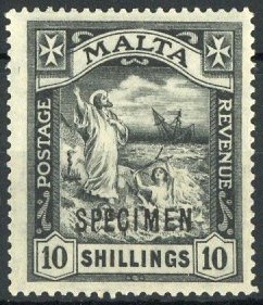 1921 Script 10/- black overprinted "specimen", fresh and fine with large part original gum. S.G. 104s