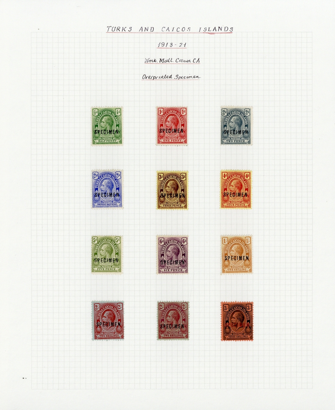 ½d. to 3/- set of eleven with additional 2/-, and 1921 Script ¼d. to 1/- set of eight, all overprinted "specimen", fresh and fine mint. S.G. 129s-139s, 138bs, 154s-161s, £405