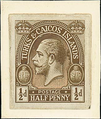 ½d. brown, composite type in the issued design with handpainted background to head, affixed to card (27x32mm.). Photo
