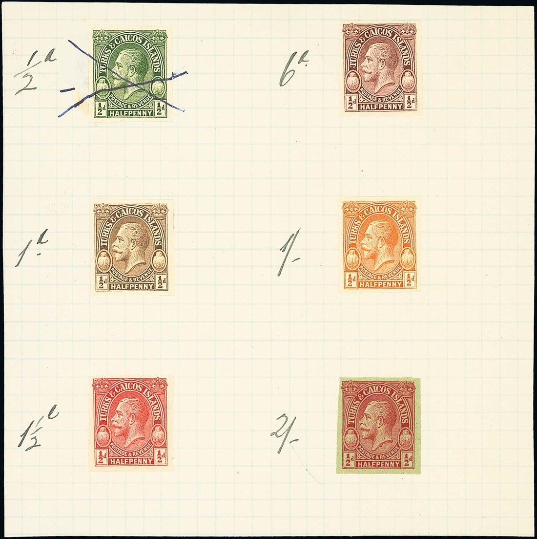 "Appendix" sheet (134x270mm., divided into two parts to fit album pages) bearing eleven ½d. trials with suggested values written alongside and marked "Approved for Colours except ½d. duty 29.11.27", the ½d. in dark green replaced by one in green affixed to a further piece marked "Appd for Colour", initialled and dated "1.12.27". Photo