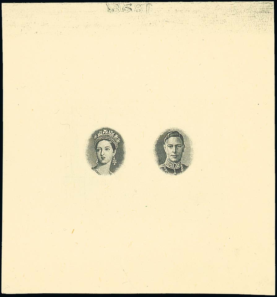 1948 Centenary of Separation from Bahamas, die proof of the vignettes (Queen Victoria and George VI heads) in black on surfaced wove paper (74x80mm.) with die number in reverse at top. Photo