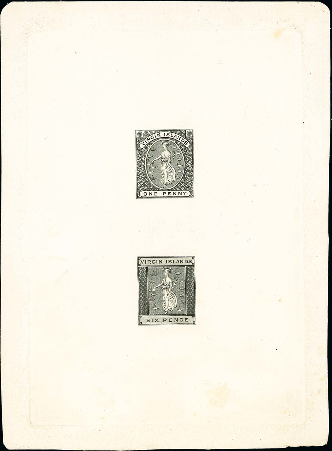 1d. and 6d. in black on single card (115x145mm.). Extremely rare. Photo