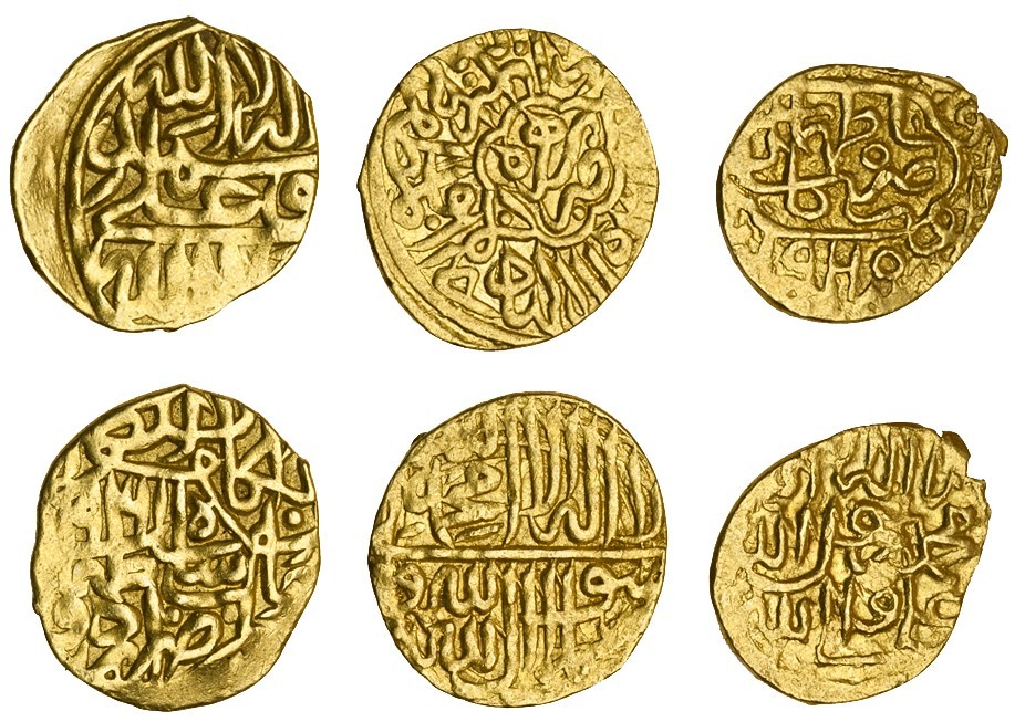 Safavid, Tahmasp I, AV Quarter-Mithqals (3), 1.18g, Kashan, AH965, 1.17g, Urdu, AH961, 0.97g, Harat, date not visible (A.2592), very fine (3)