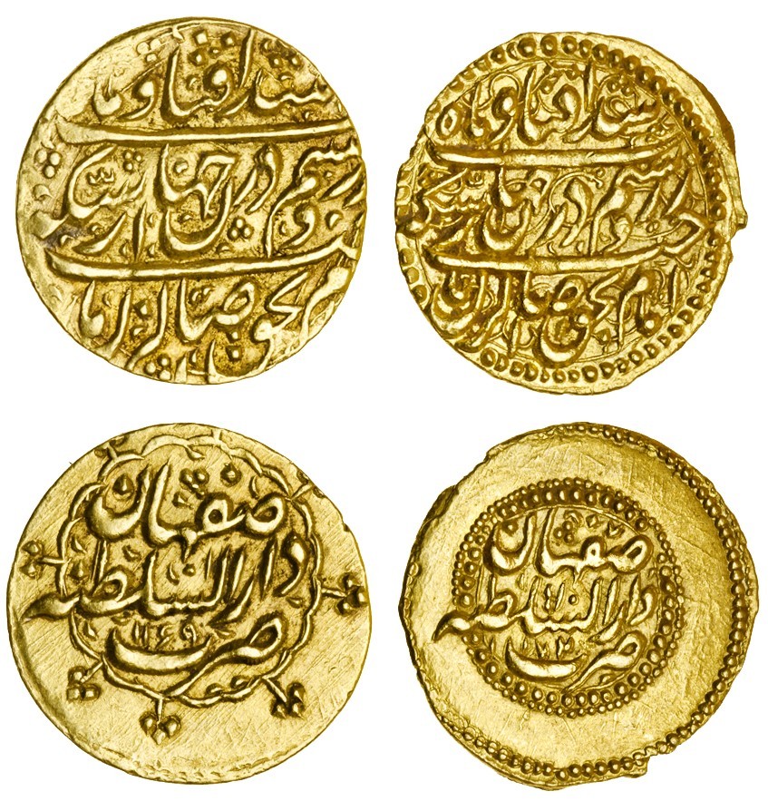 Zand, Karim Khan, AV Quarter-Mohurs (2), 2.74g, 2.75g, Dar al-Sultanat Isfahan, AH1169, AH1172 (KM.518.1), good very fine (2)
