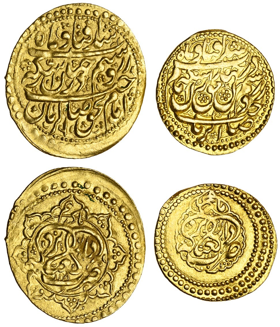 Zand, Karim Khan, AV Quarter-Mohurs (2), 2.74g, 2.77g, Yazd, AH1181, 1182, different legend arrangements (KM.525.9), good very fine (2)