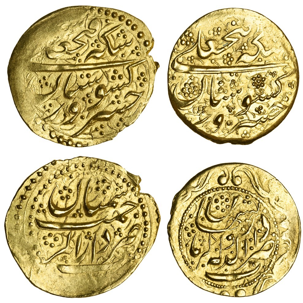 Qajar, Fath 'Ali Shah, AV Keshvarsetans (2), 3.47g, Dar al-Marhamat Simnan, date off flan, 3.44g, Dar al-Dawla Kirmanshahan, AH(124)8, type Y (KM.759.7, 759.11), both good very fine with one edge a little flattened, the first scarce (2)