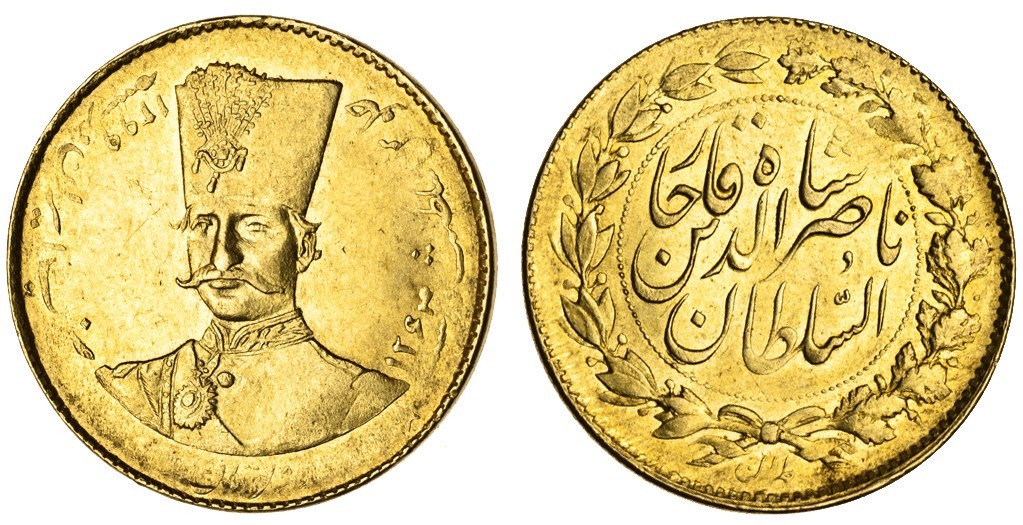(g) Qajar, Nasir al-din Shah, AV Double-Toman, 5.79g, Tehran, AH1299, uniformed bust of Shah (KM.942), about extremely fine
