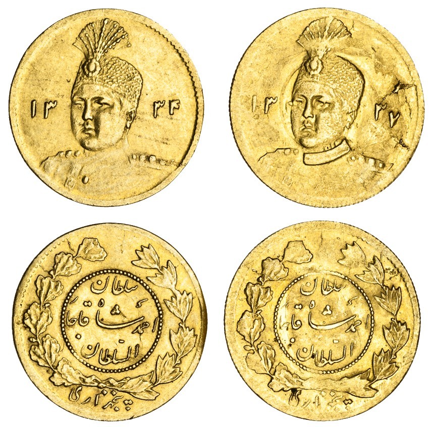 (g) Qajar, Ahmad Shah (1909-25), AV 5000-Dinars (Half-Toman) (2), 1.43g, 1.39g, Tehran, AH1334, AH1337 (KM.1071), good very fine and very fine (2)