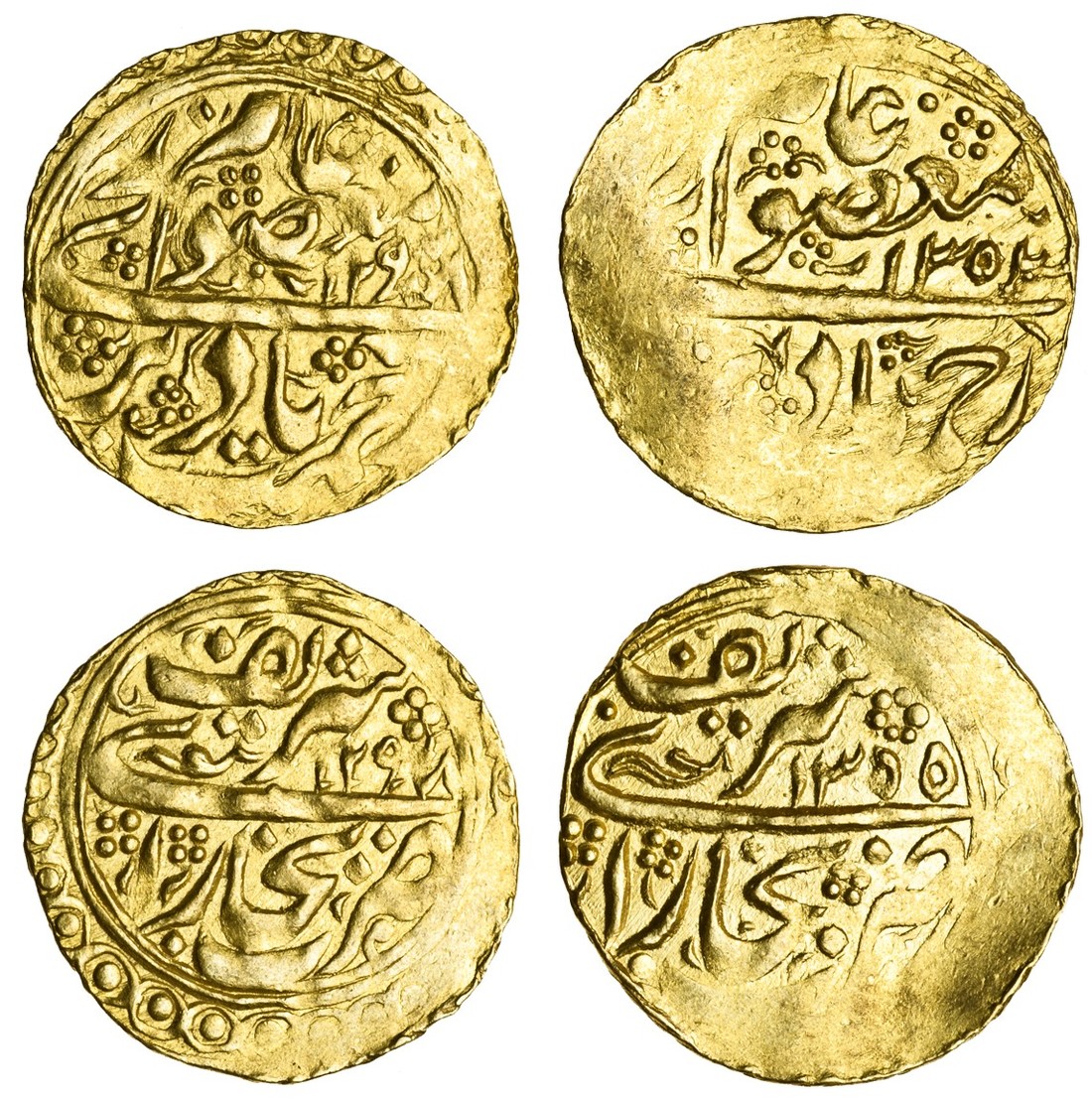 Manghits of Bukhara, Muzaffar al-din, AV Tillas (2), 4.58g, 4.54g, Bukhara, AH1297, AH1300 / 1302, struck in the name of Ma'sum Ghazi (KM.65), good very fine (2)
