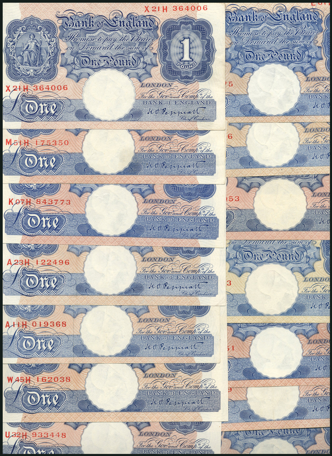 Bank of England, K O Peppiatt, a group of £1 from the 1940 Issue, blue and salmon pink, seated Britannia at left, reverse St George slaying dragon