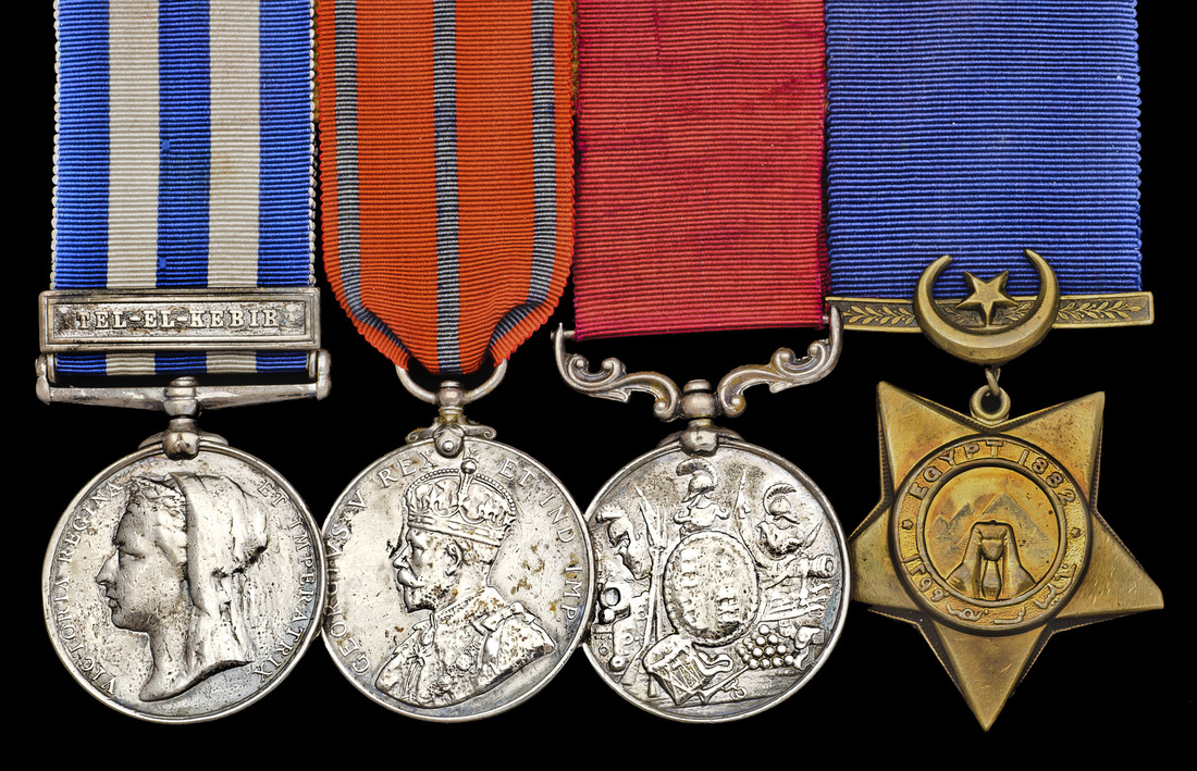 Egypt 1882-89, dated, one clasp, Tel-el-Kebir (725 Tpr. J. Hepworth. 2nd. Life Gds.); Coronation (Royal Parks) 1911 (J. Hepwroth); Army Long Service & G.C., V.R. (...J. Hepworth 2nd Life...); Khedive's Star 1882, unnamed as issued, heavily polished and heavy pitting and contact marks, therefore fine, the Coronation Medal very fine, a rare combination (4)
