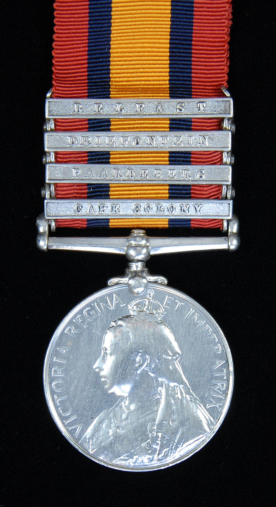 Queen's South Africa 1899-1902, four clasps, Cape Colony, Paardeberg, Driefontein, Belfast (2128 Tr: H. Todd. 2:L-Gds:), edge bruising, polished, therefore fine, the reverse better