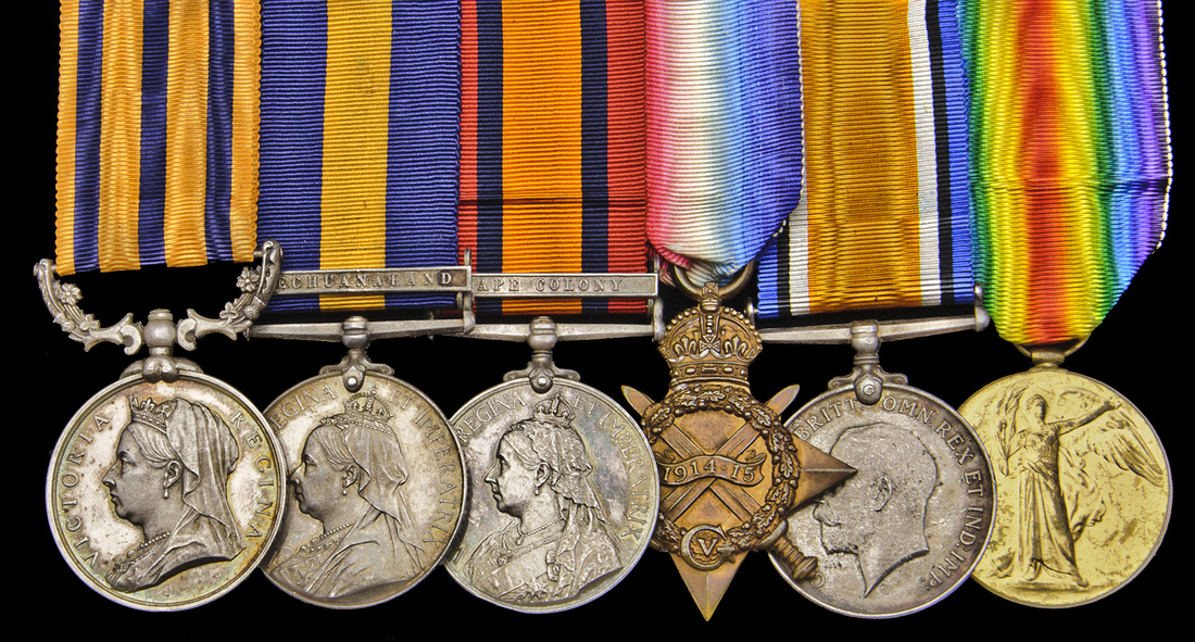 British South Africa Company's Medal 1890-97, for Rhodesia 1896, no clasp (Tpr. T.G.A. Miller, Matab. Rle. Fce.); Cape of Good Hope General Service 1880-97, one clasp, Bechuanaland (Lieut. T.G.A. Miller. Intell. Dept.); Queen's South Africa 1899-1902, one clasp, Cape Colony (Lieut: T.G.A. Miller, D.E.O.V.Rif:); 1914-15 Star (285 Cpl. T.G.A. Miller. 2/L.H.Rgt. A.I.F.); British War Medal (285 Pte. T.G.A. Miller. 2/L.H.Rgt. A.I.F.); Victory Medal (285 Cpl. T.G.A. Miller. 2-L.H.R. A.I.F.), edge bruise to first and third, otherwise extremely fine, a rare combination (6)