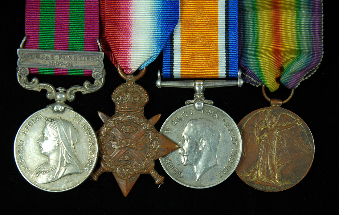 India General Service 1895-1902, V.R., one clasp, Punjab Frontier 1897-98 (4278 Pte. T. Shorthouse 1st. Bn. Som: Lt. Infy.); 1914 Star (4278 Pte. T. Shorthouse. 1/Som: L.I.); British War and Victory Medals (4278 Pte. T. Shorthouse. Som. L.I.), Star and VM mottled, minor edge bruising, nearly very fine (4)