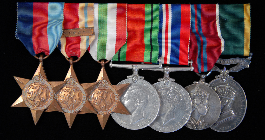 1939-1945 Star; Africa Star, with 8th Army Bar; Italy Star; Defence and War Medals; Coronation 1953; Efficiency Medal, G.VI.R., with 'Territorial' scroll suspension (2071104 Spr. V.H. [sic] Roberts. R.E.), very fine, mounted as worn, together with the recipient's riband bar; cap badge; Soldier's Service and Pay Book; Soldier's Record and Pay Book; the recipient's Prayer Book; Tests and Training Book; two Certificates of Service; Soldier's Release Book; various photographs; cloth insignia, various badges and buttons (7)