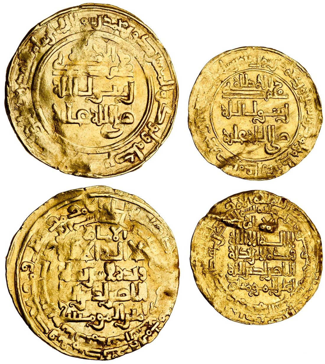 (x) Abbasid, al-Nasir (1180-1225), AV Dinars (2), 9.35g, Madinat al-Salam, AH60-, 2.55g, Madinat al-Salam, AH615 (A.268), flans slightly impaired in places, very fine and good fine (2)