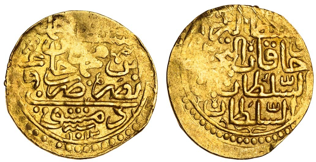 Ottoman, Ahmed I (1603-17), AV Sultani, 3.41g, Dimashq, AH1012 (A.1347.2), from a mount, otherwise very fine