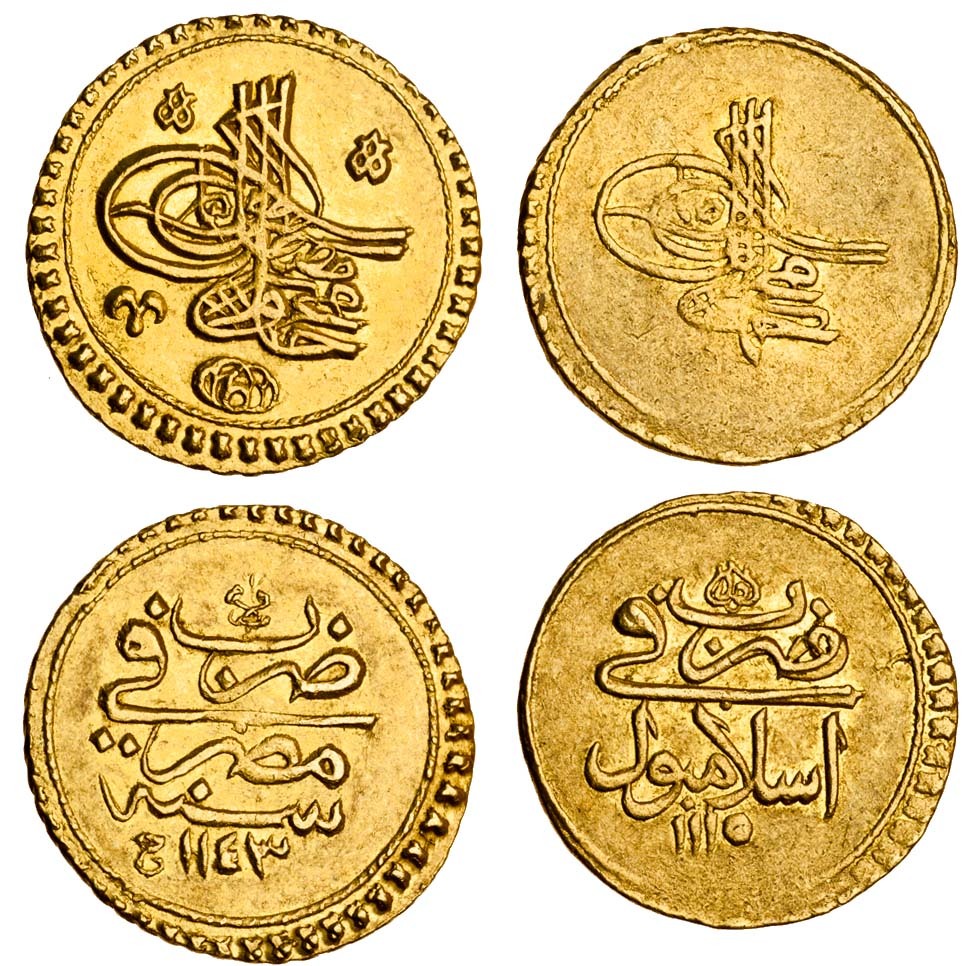 (x) Ottoman, Ahmed III (1703-30), AV Zeri Istanbul, Islambul, AH1115 (KM.173), very fine, Mahmud I (1730-54), AV Zinjirli Altin, Misr, AH1143 iii (KM.91), about extremely fine (2)