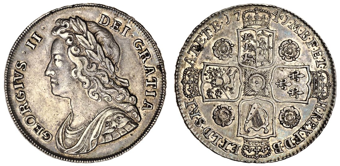 George II (1727-60), Halfcrown, 1741 d qvarto, laureate bust left, rev. four crowned shields, roses (ESC 601; S.3693), cleaned, very fine